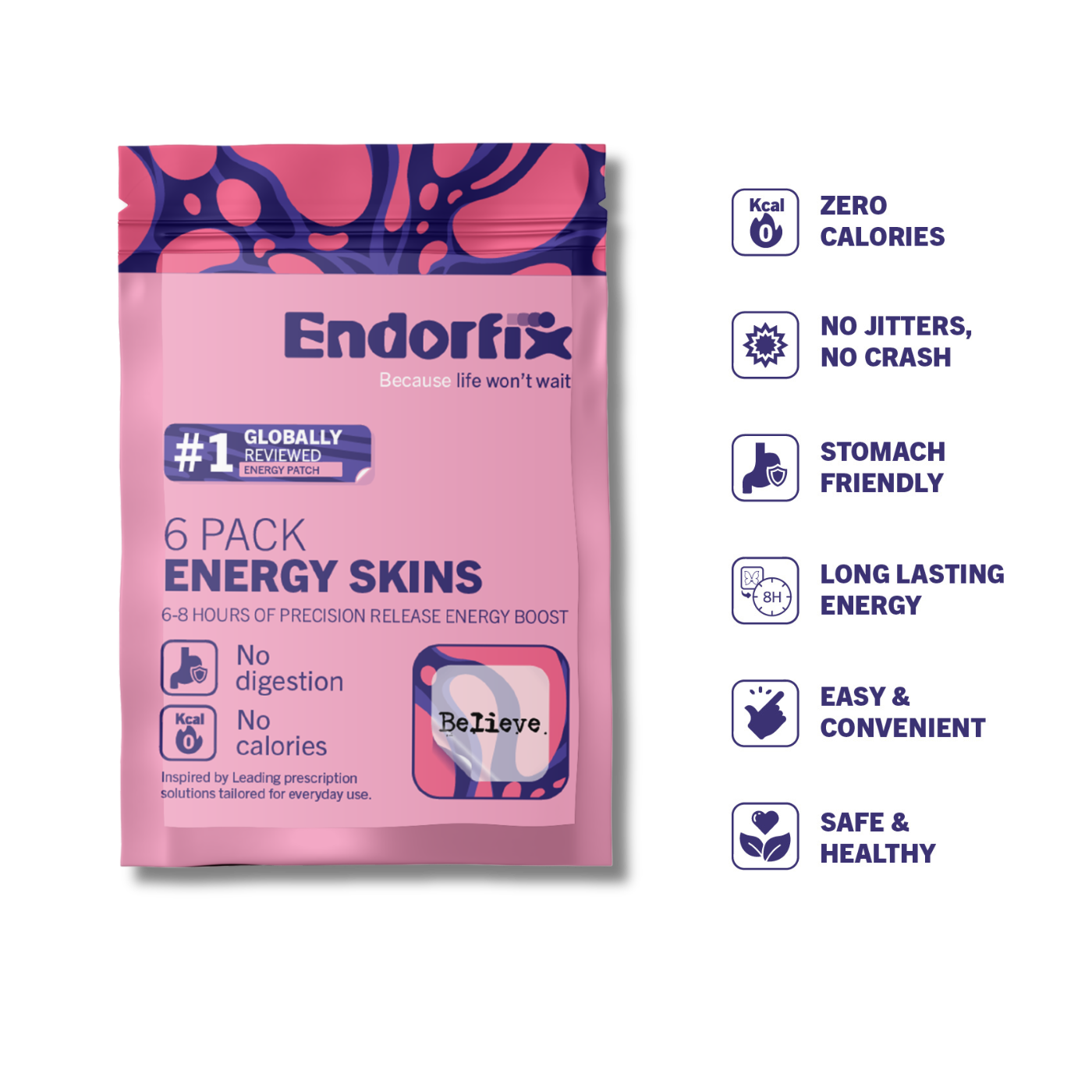 Six energy patches in one pack, each delivering 6–8 hours of sustained focus without jitters.